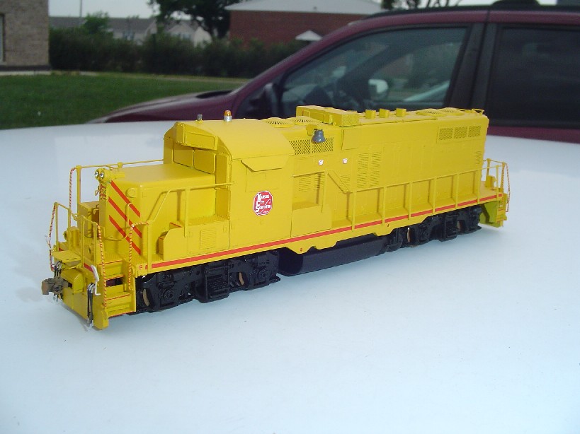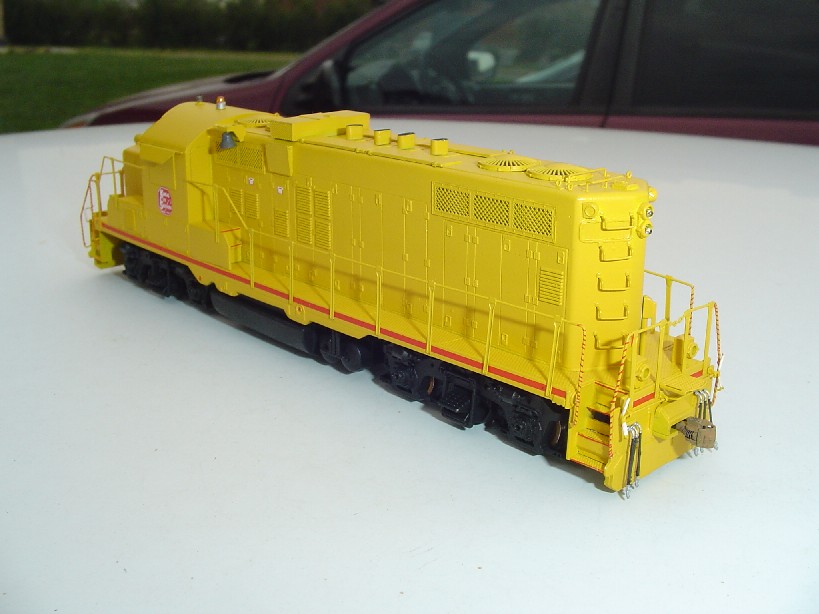 is a combination of Scalecoat II UP armor yellow with some Floquil reefer orange added. The decals were custom made for this project by Highball Graphics. The model was semiglossed with a combination of Testor's dullcoat and glosscoat products.